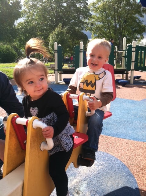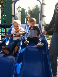 today was cool but nice out so after nap time, we headed out to our favorite park. we even brought our bikes with us too. we should know better by now, that if we want to actually ride our bikes around the park, we need to park farther from the playground (maybe next time). we got there, john headed right towards the playground. gilly and i got to do a lap around the park on the bike and met up with daddy and john at the playground.