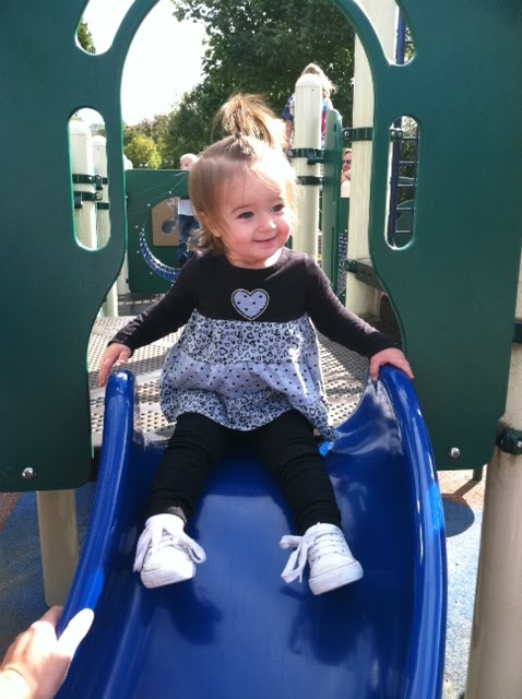 gillian is at the stage where she really loves the swings, but she did try the slides and the see-saw too. she loves to walk around and watch the bigger kids.