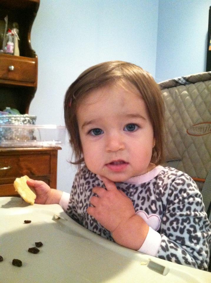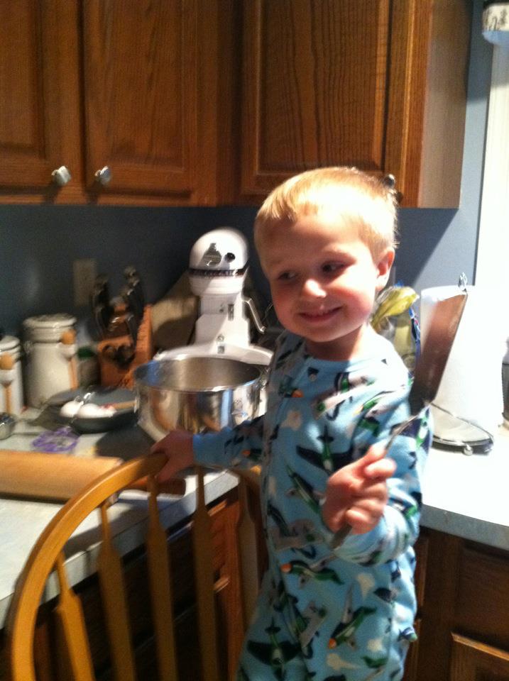 normally he fights me and wants to roll out the dough, but today he was obsessed with the spatula. it made things a lot easier for mommy to not have him help with the rolling pin. gillian woke up in the middle of our baking, but she was content to watch from her high chair. she became our official taste tester.