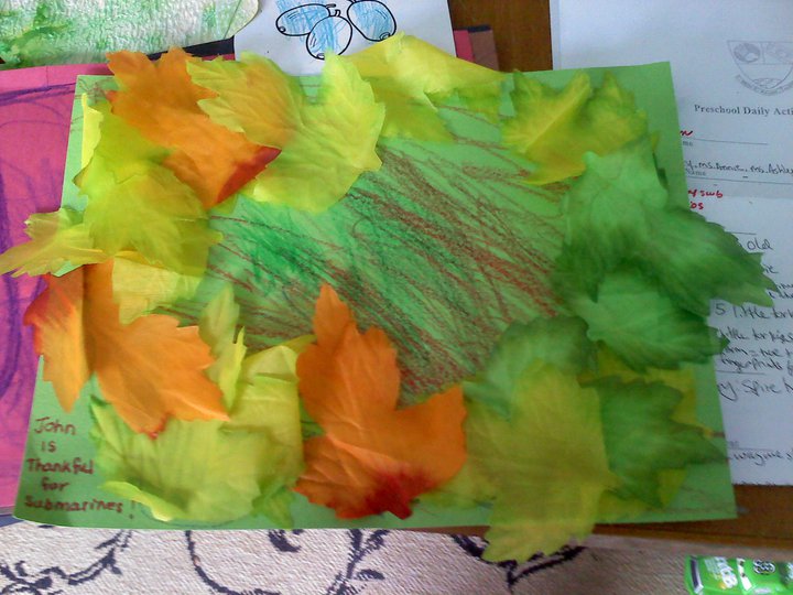 it’s amazing how quickly john has grown over the last year. every year at school, they have the kids make a picture of what they are thankful for. his teacher’s captioned his picture last year with “john is thankful for submarines.”