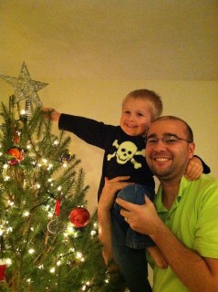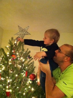 we finally got the tree decorated and it was time for john to put the star on top.