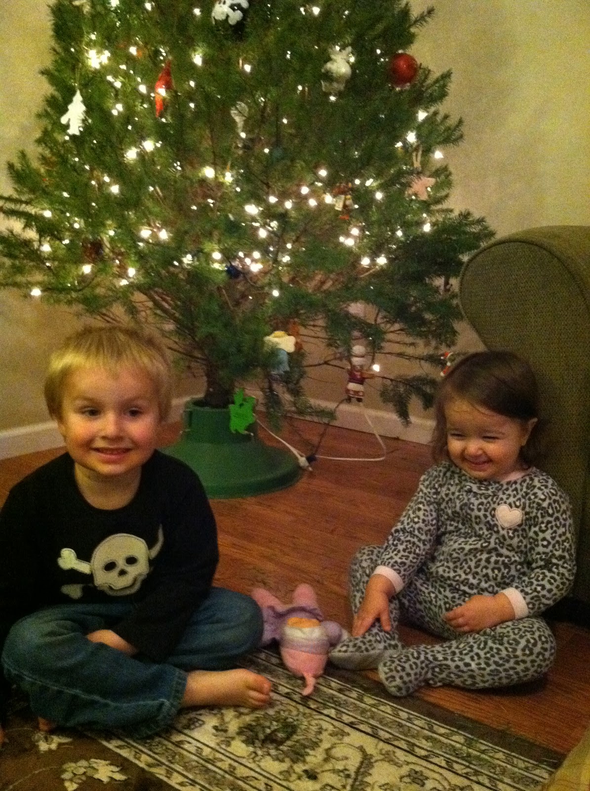 we called daddy and gillian back to help us put the ornaments on the tree. we set aside all the unbreakable ornaments for john to put on the tree. gillian helped in her own little way.