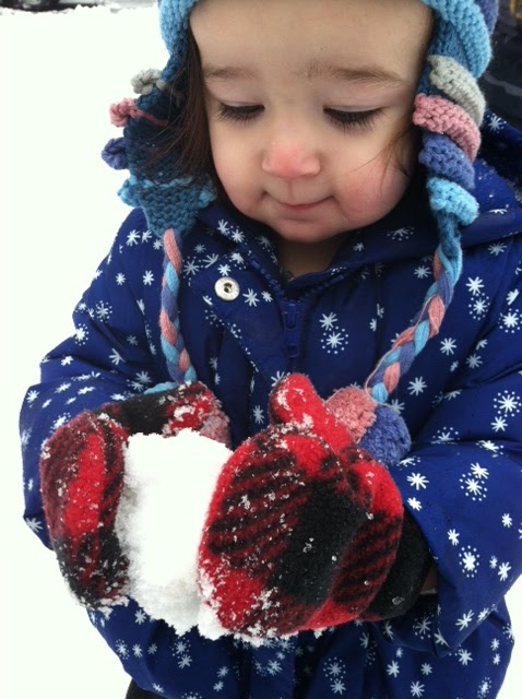 The kids had a little snow fight with Daddy and they tried to build a snowman too. Daddy said that Gillian not too fond of the snow. But she did try to make a snowball.