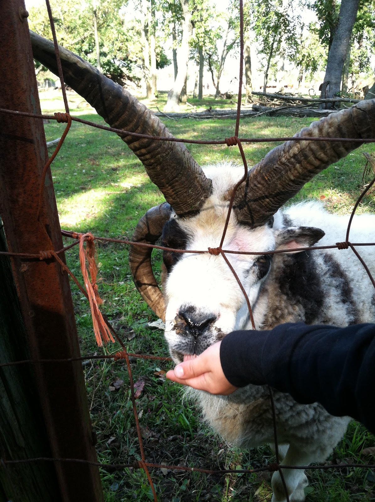 John found a goat (ram? I’m not really sure what it was), with three horns. He told Mimi, “He knocked down all the trees. He has three really strong horns and knocked down all the trees here.”