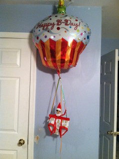 December 19 – Buddy made a hot air balloon out of a birthday balloon for Daddy.