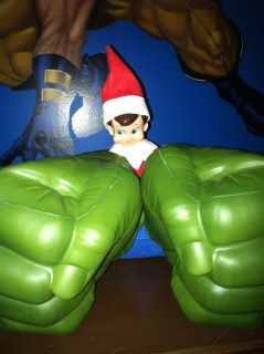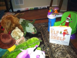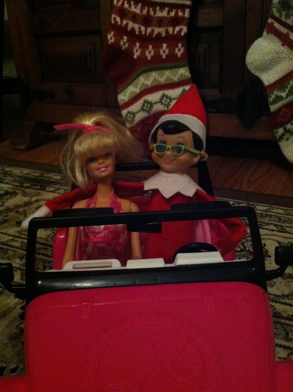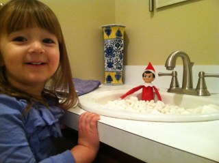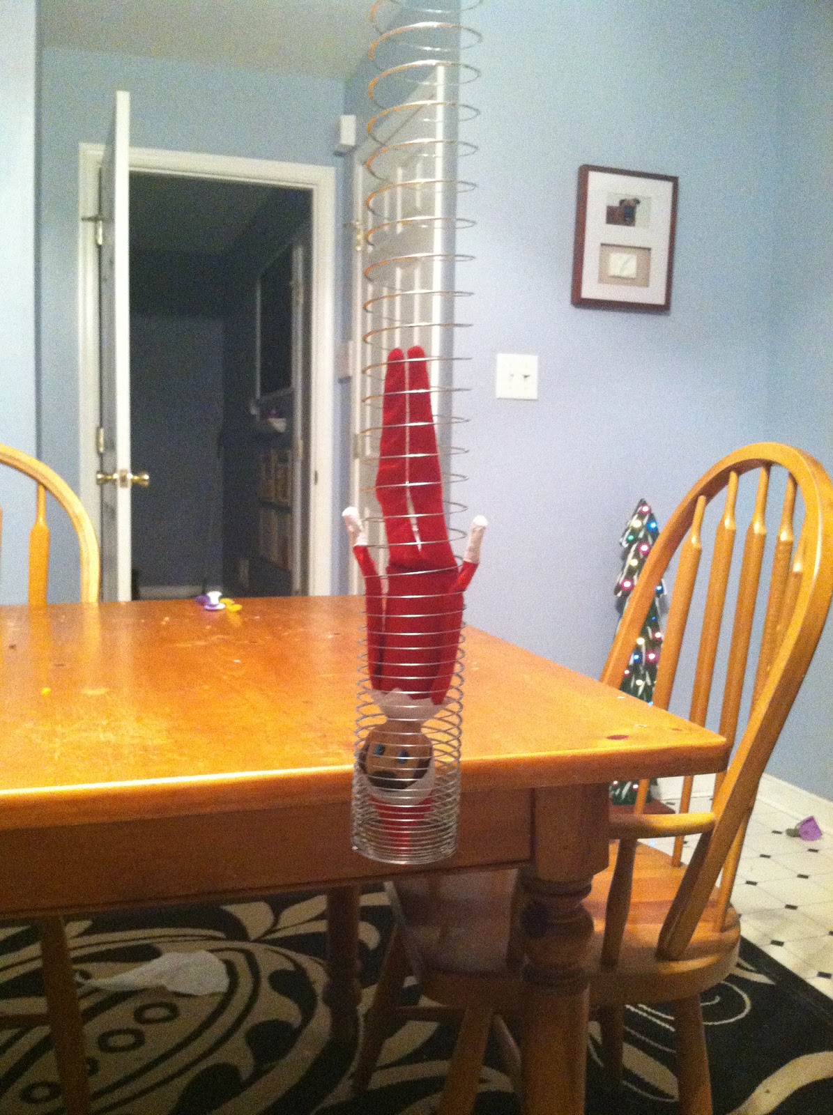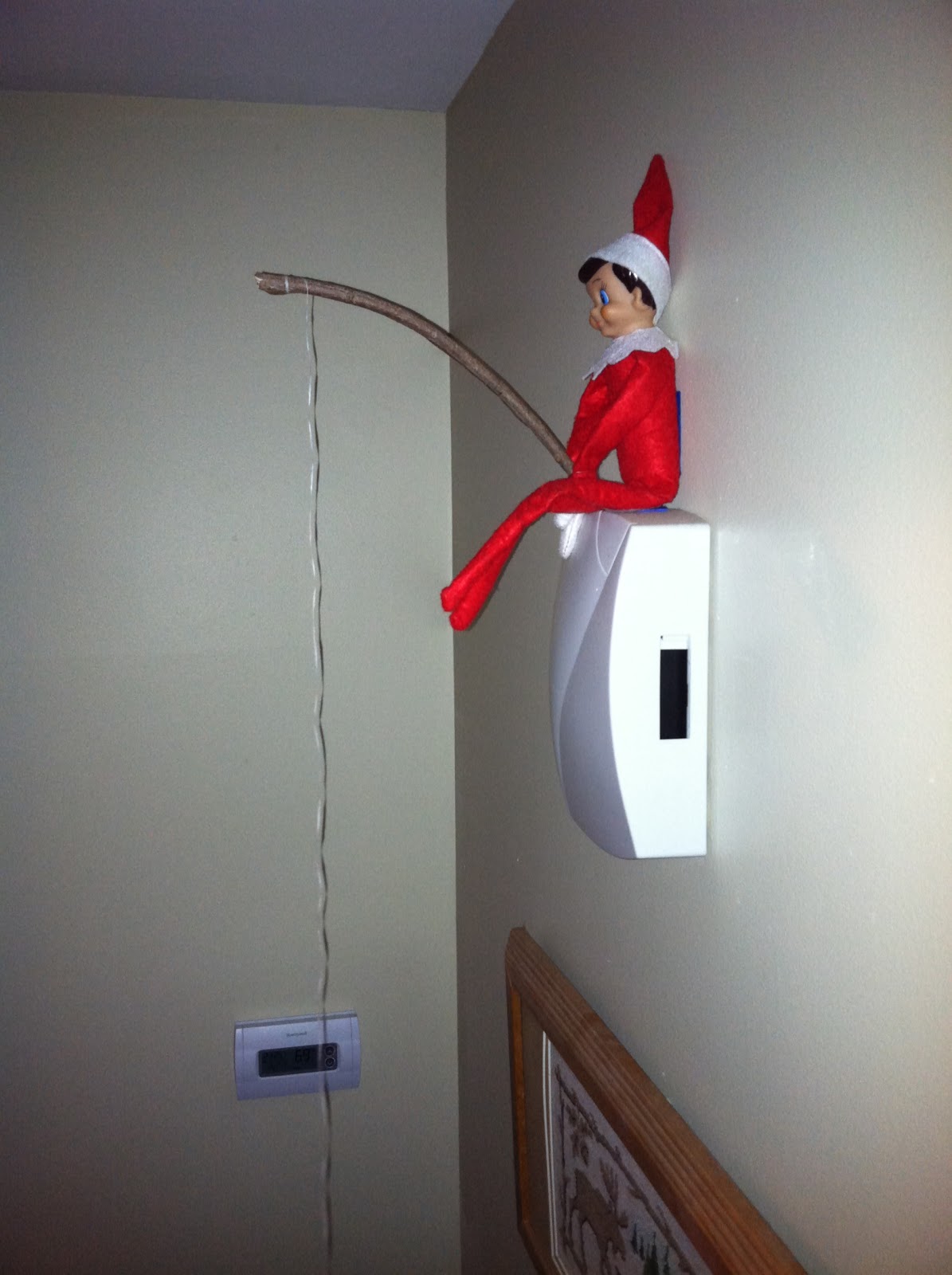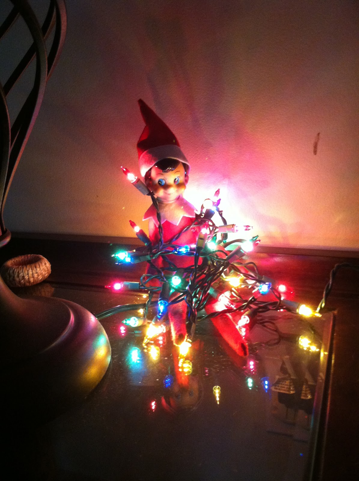 Our Elf on the Shelf arrives the day after Thanksgiving. His name is Buddy. Buddy is one of Santa’s messengers. He comes to visit the kids during the day and then goes back to the north pole at night and reports back to Santa. The next day, Buddy will be found in a different spot. Buddy was a little adventurous and silly this year. Here are all the places the kids found him this year:
