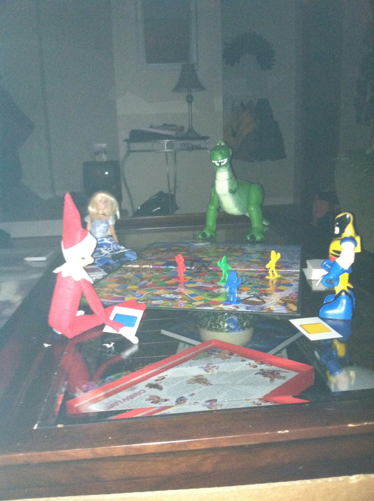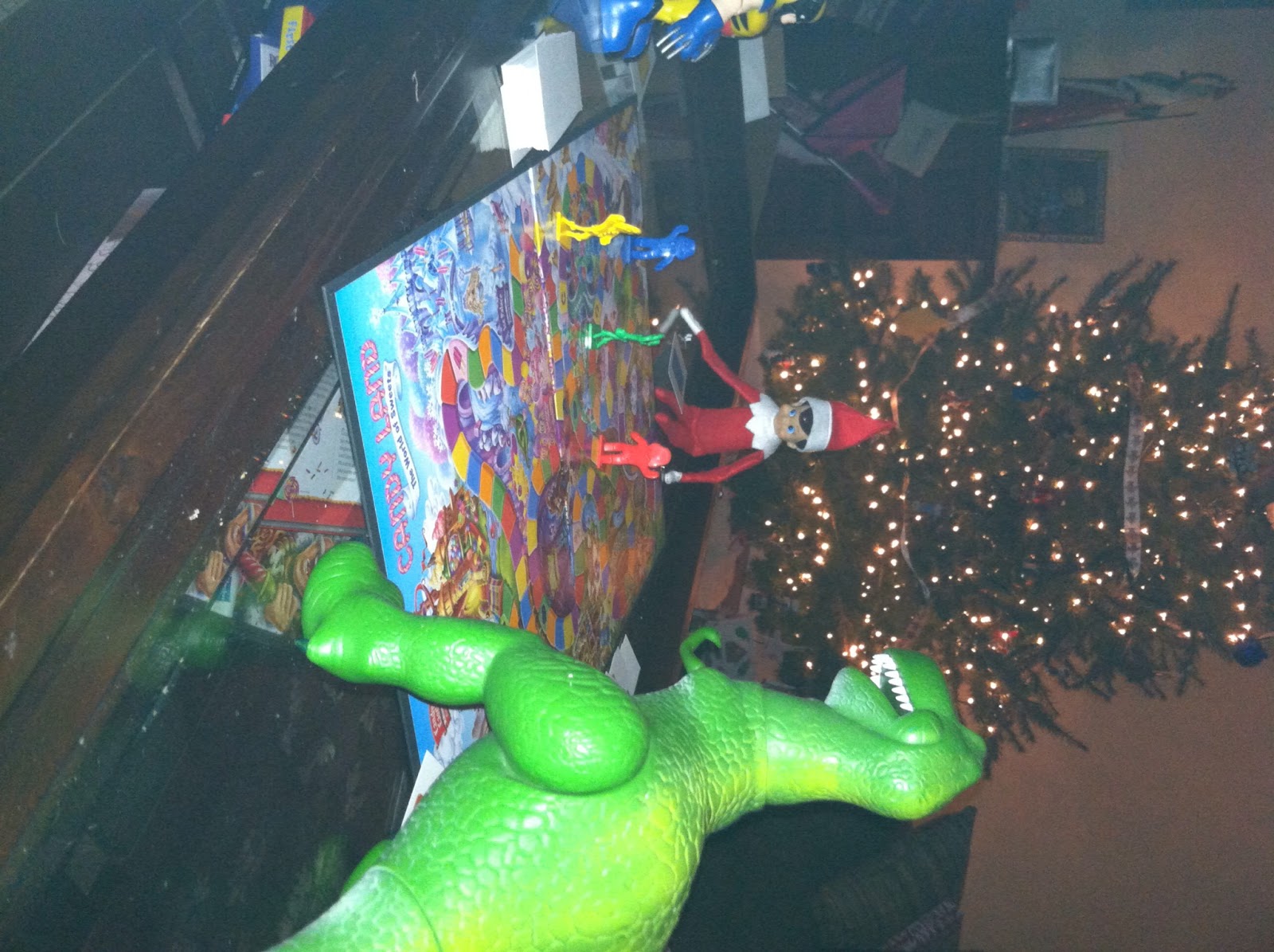 December 24 – Buddy played a game of Candyland with Rex, Wolverine and Cinderella