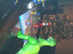 December 9 – Buddy borrowed John’s favorite friend, Travis! John said “I was holding him so tight! I don’t know how Buddy got him out of my arms!”