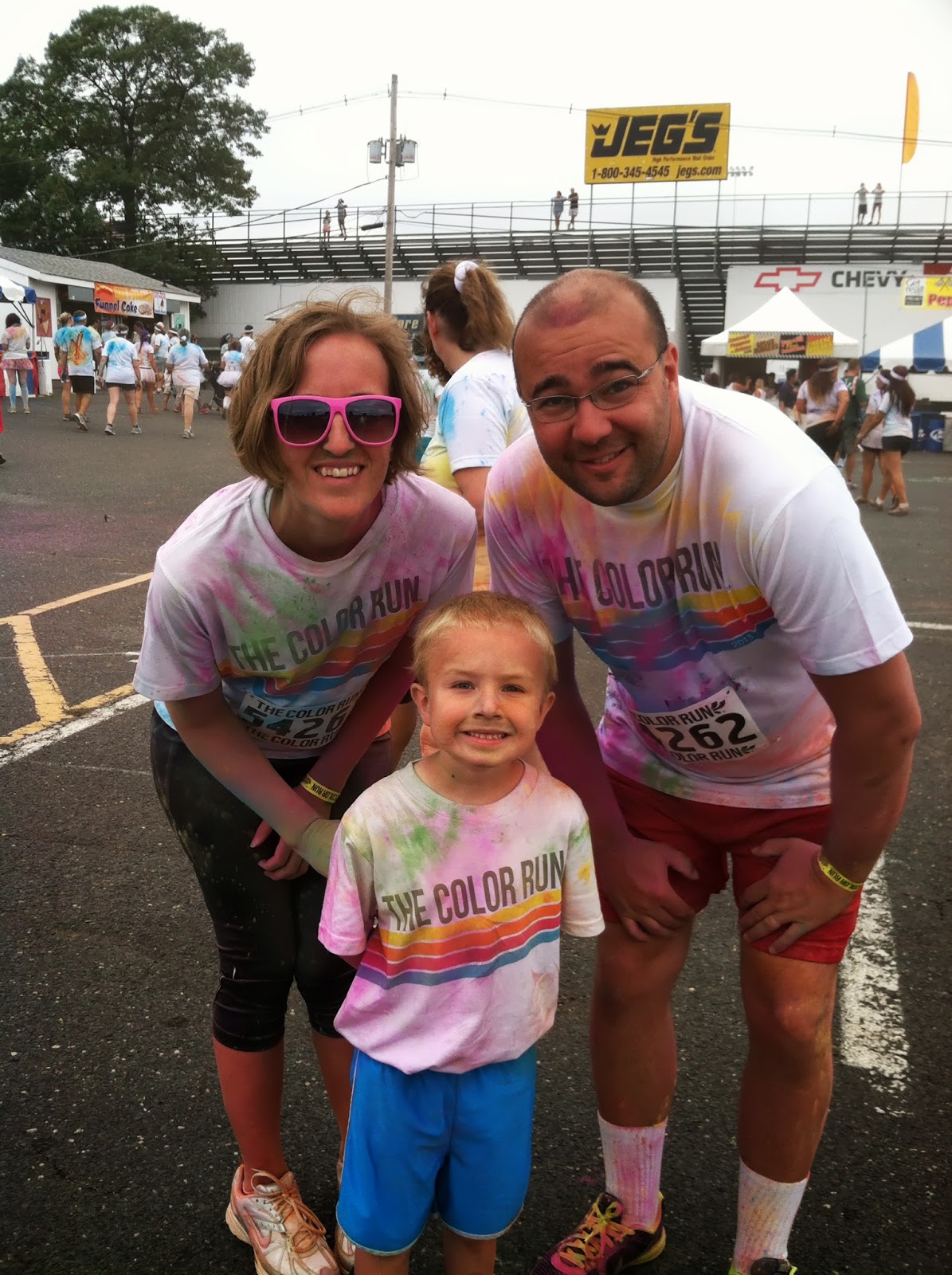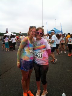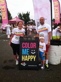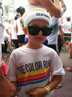 He had the biggest grin when he was done. He loved it. We ran and walked thru the rest of the colors: Blue, Yellow and finally Orange. John had a blast getting colorful, but wasn’t so happy about how long the race was. When I asked him if he would do it again next year, he said “No. It was tooo long!” I’m sure we can convince him to do it again.