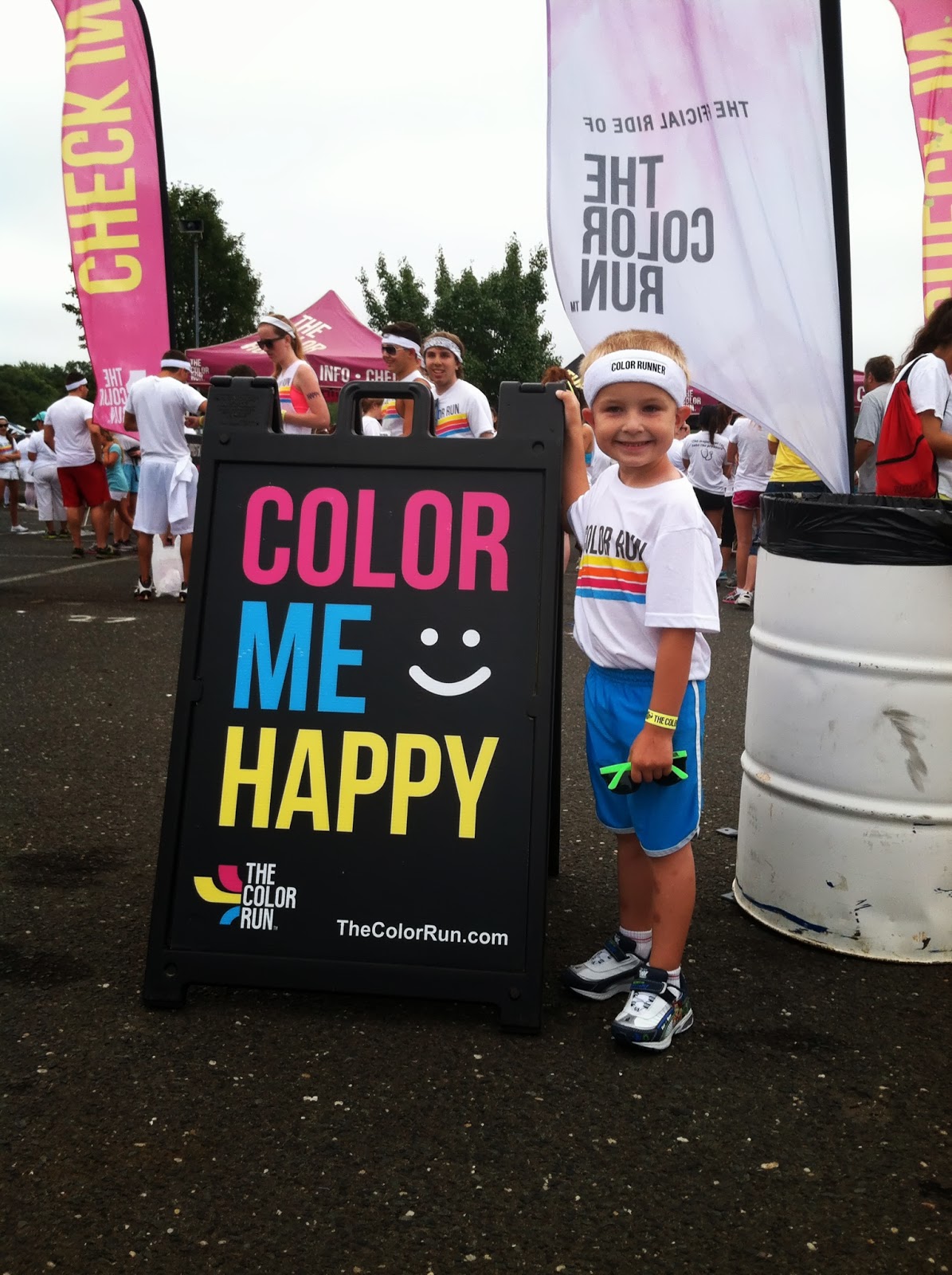 The Color Run isn’t timed and has a rolling start. After waiting our turn, we were finally at the starting line. Once they told us to go, John went running. We weren’t expecting him to go so fast, but we were right behind him. He ran for awhile and then slowed down. We ended up walking until the first color station. The first color was pink. John put on his shades and went thru.