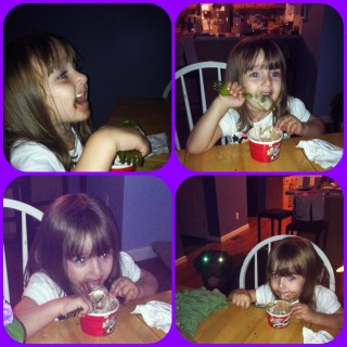 Aunt Missy sent me a picture of Gillian eating her ice cream after dinner. Gillian truly enjoys ice cream and desserts and wants to make sure her whole face gets some too!