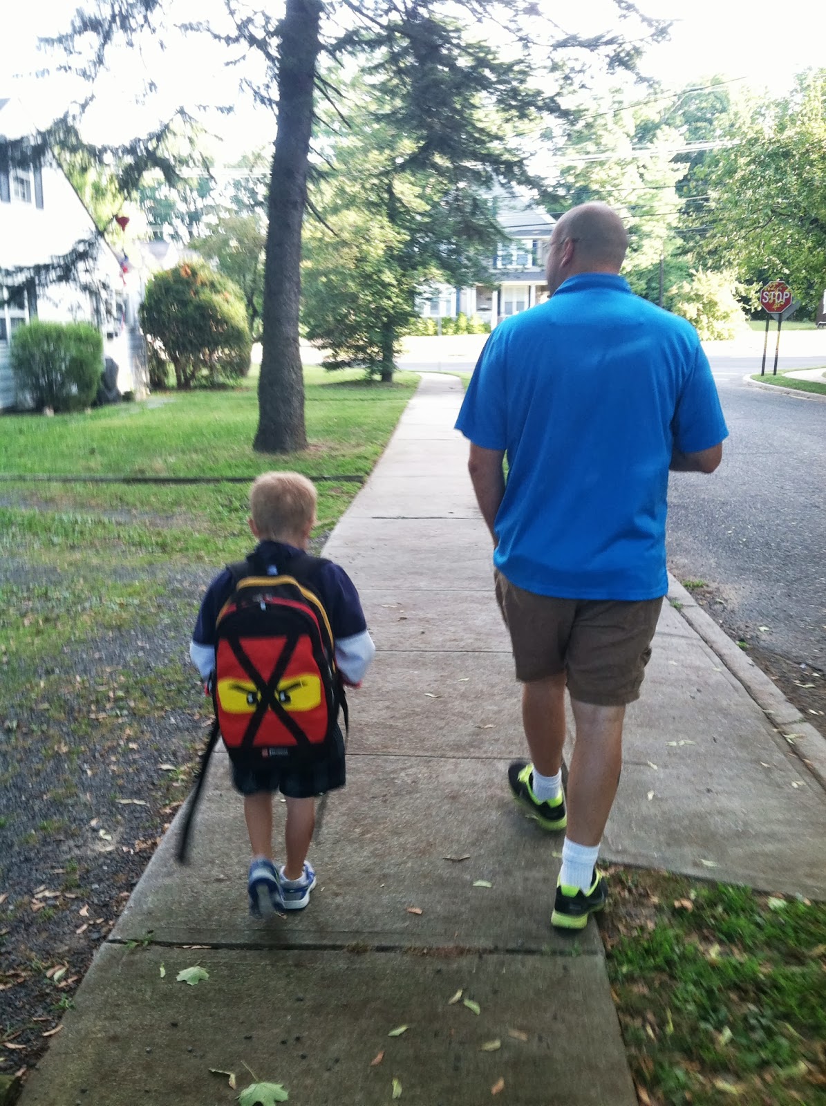 Today was John’s first day of First Grade. John woke up early and we told him to get dressed. I had a collared shirt and khaki shorts picked out for John to wear for his first day. John got dressed and I went to help him find socks and he was wearing a completely different outfit than what I had picked out. John told Daddy that he felt more comfortable in his outfit. It’s hard to argue with that.
