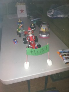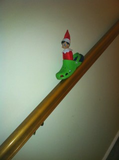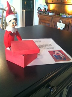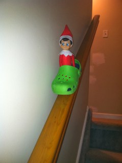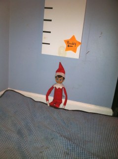 The kids spent the night at Grandma’s on Saturday, December 14th and when I picked them up on Sunday, they immediately asked “Where’s Buddy?” “Did you see him?” When I said “No.” John said “Did you see anything unusual?” I love that they were excited to see what Buddy was up to. We found him when we got home. He was just chilling in a jar on Mommy’s cabinets.