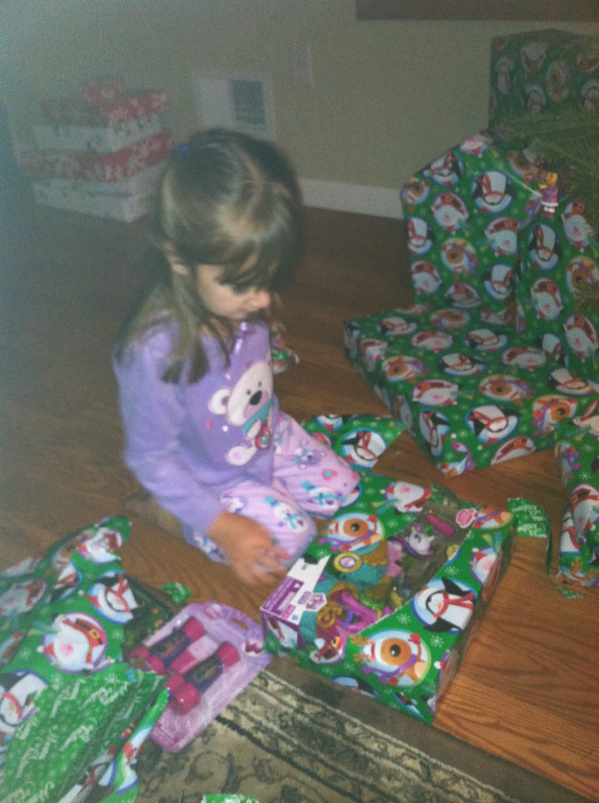 On Christmas eve, we went to Grandma and Grandpa’s house. Gillian was the last one opening presents. Because every present she opened she would say “I love it!” Then hug whatever she got. She did it with everything.