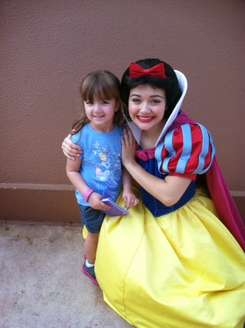 After the Magic Kingdom, we went to Epcot. In Epcot, we saw Snow White. Daddy and I think that Snow White was headed for a break, but when she saw Gillian and a few other girls, she stopped to take some pictures with them.