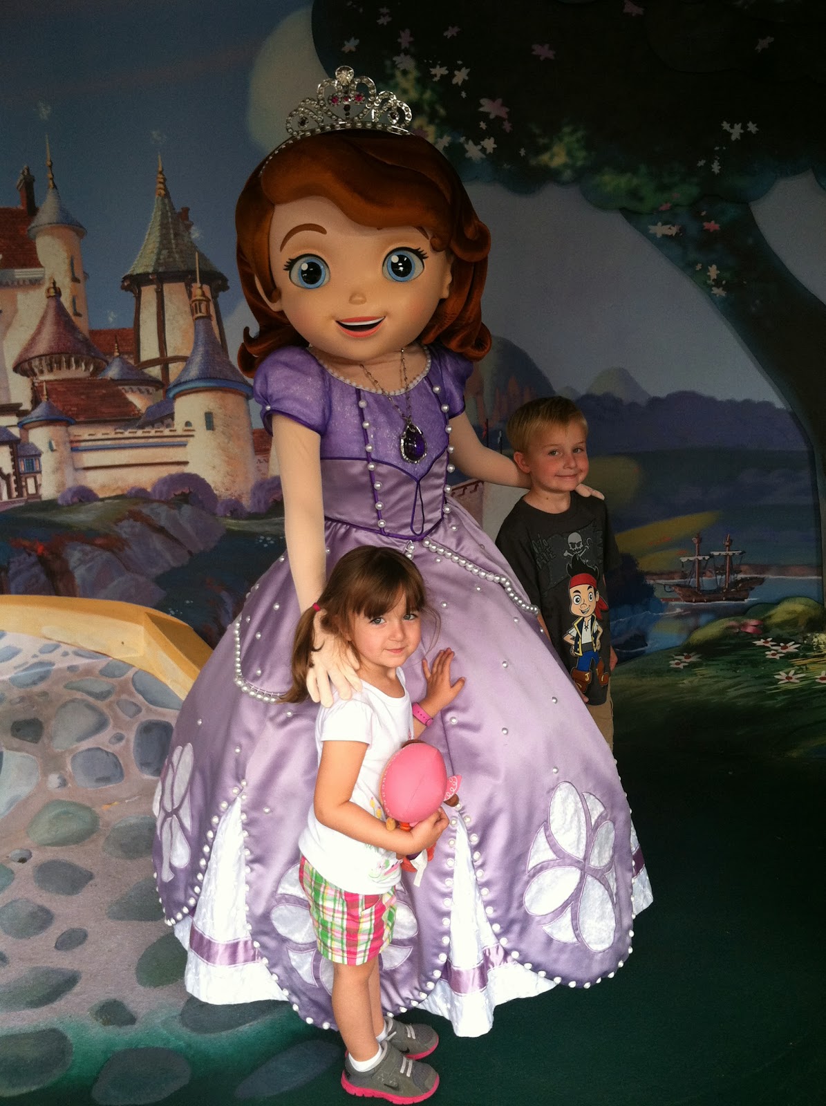 The next day we spent in Animal Kingdom. Unfortunately, we didn’t meet any princesses there. But the following day we went to Hollywood Studios. In Hollywood Studios, we met Princess Sofia! Sofia the First is one of Disney’s newest princesses and Gillian loves watching her show (so does John). Gillian waited patiently for her turn to meet the princess. John, on the other hand, was not so happy. He kept saying “Do I have to meet her? I don’t even like the show!” But he still asked Sofia for an autograph and posed for pictures.