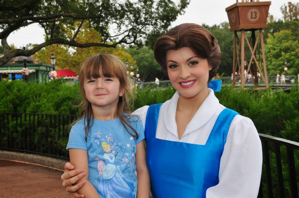 The first characters we met were Pluto and Minnie Mouse. Gillian was VERY afraid of them. I’m not sure if it was the awe of meeting them or because it was early in the morning or just by their sheer size. Anyway, she was afraid of them, and didn’t want to go near them. The next characters we met were Chip and Dale. They were awesome. They took the time to interact with Gillian and she lost her shyness. But our very first princess we met was Belle. We went on the Enchanted Tales with Belle attraction. Gillian got to dance with Belle and have her picture taken.