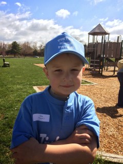 Then John’s team got up at bat. And this time, the other team was in the outfield. They were each given one person to watch and they had to catch their partner’s ball. John did great in the outfield. He knew exactly which ball to watch and went running for it.