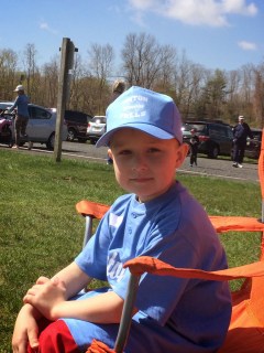 Daddy signed John up for instructional Tee-Ball. This Saturday was his first session. We got there early. John and Gillian had plenty of time to play on the playground and make a few new friends. Aunt Betty arrived just in time for John’s first session. We went to the field and John met his coaches and teammates. They started by running all the bases and learning all the names of the bases. Then each kid got a chance at bat. When John went up to bat, he hit righty and had a hard time.
