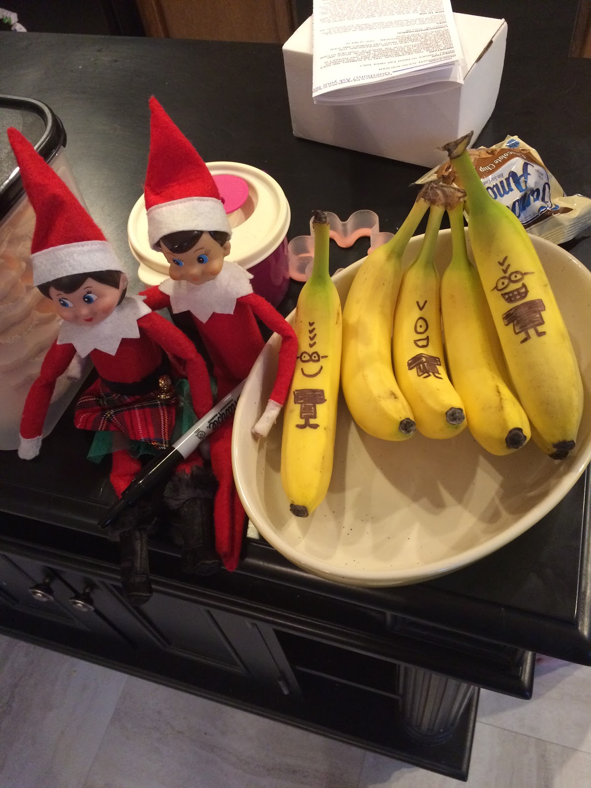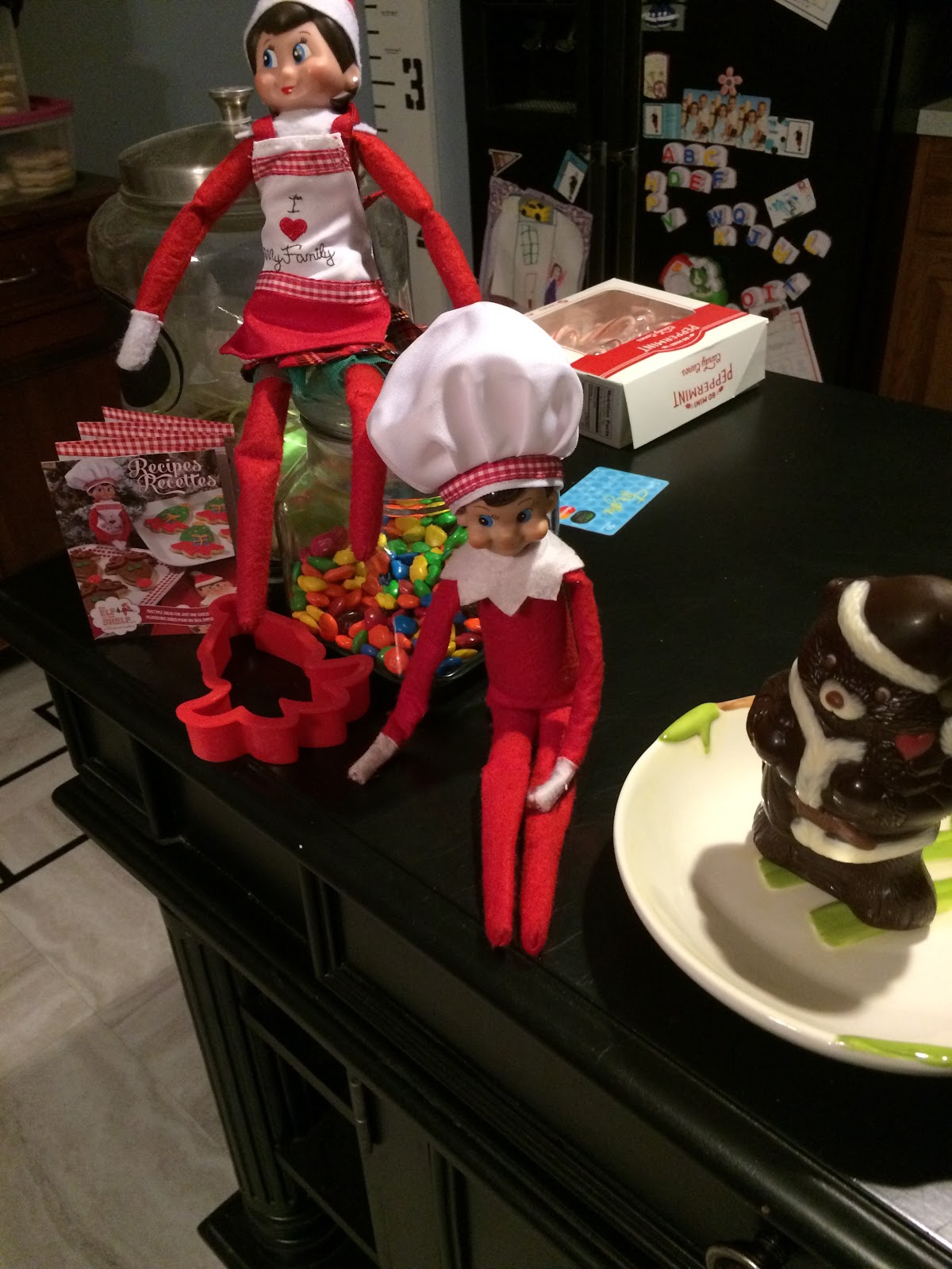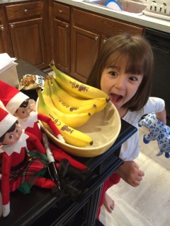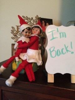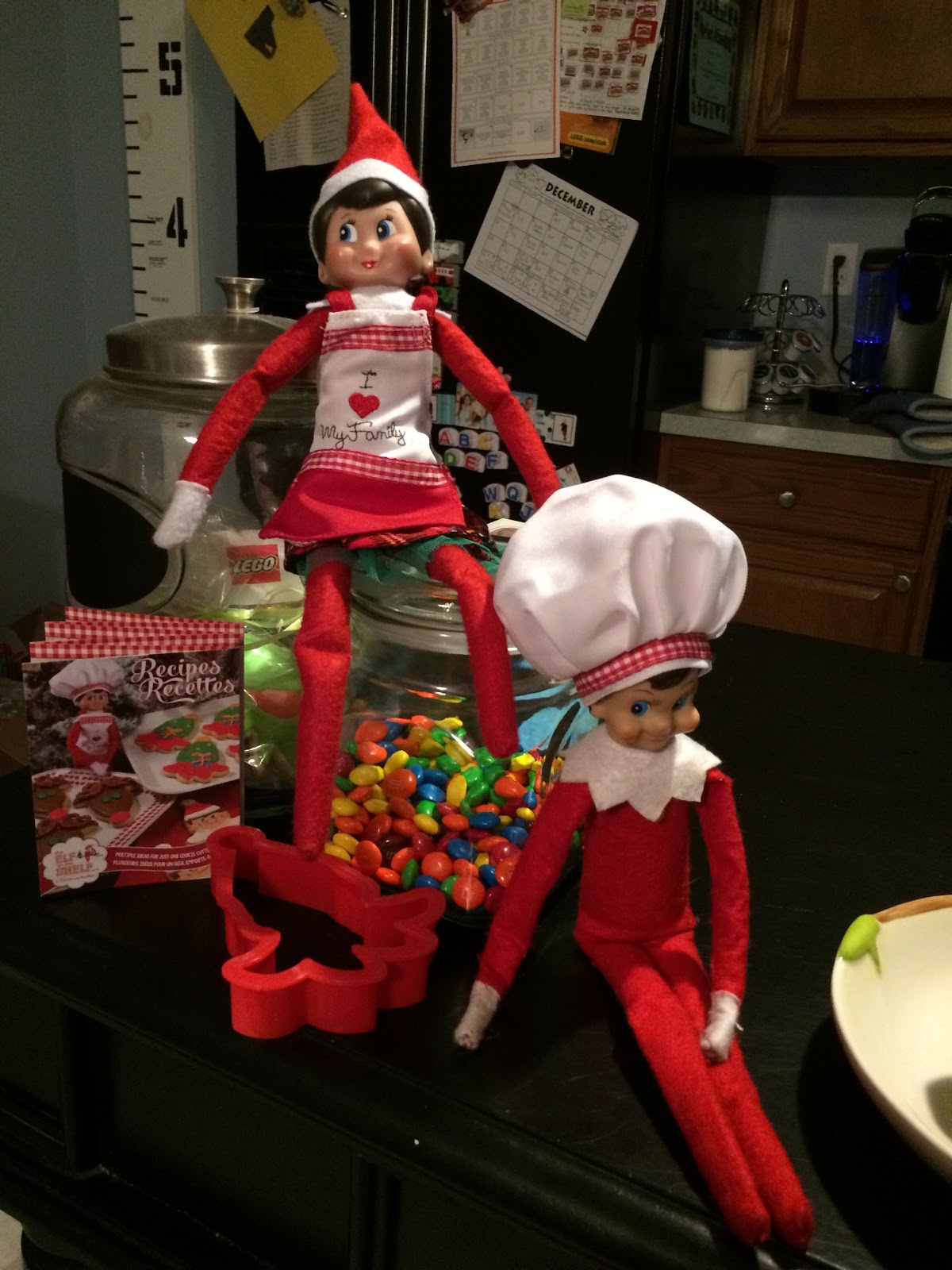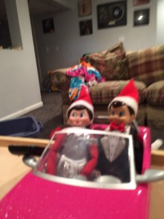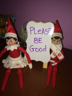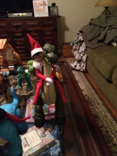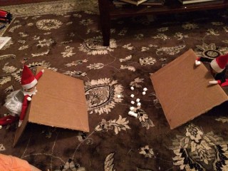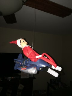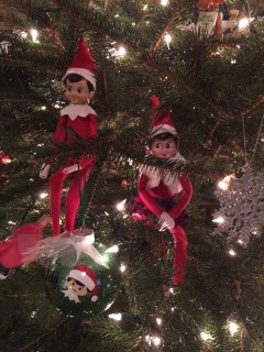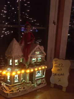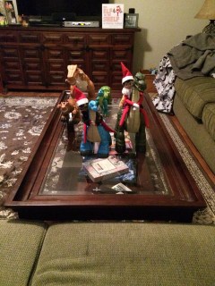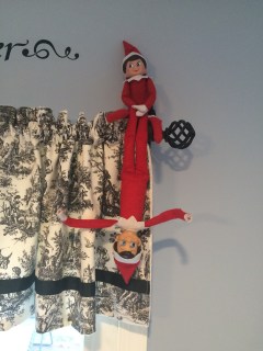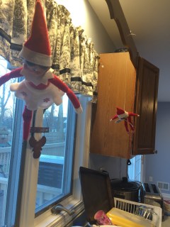 The next day we found the elves just hanging around in the kitchen. John said “Why are they always together? Can’t they just do stuff apart?”