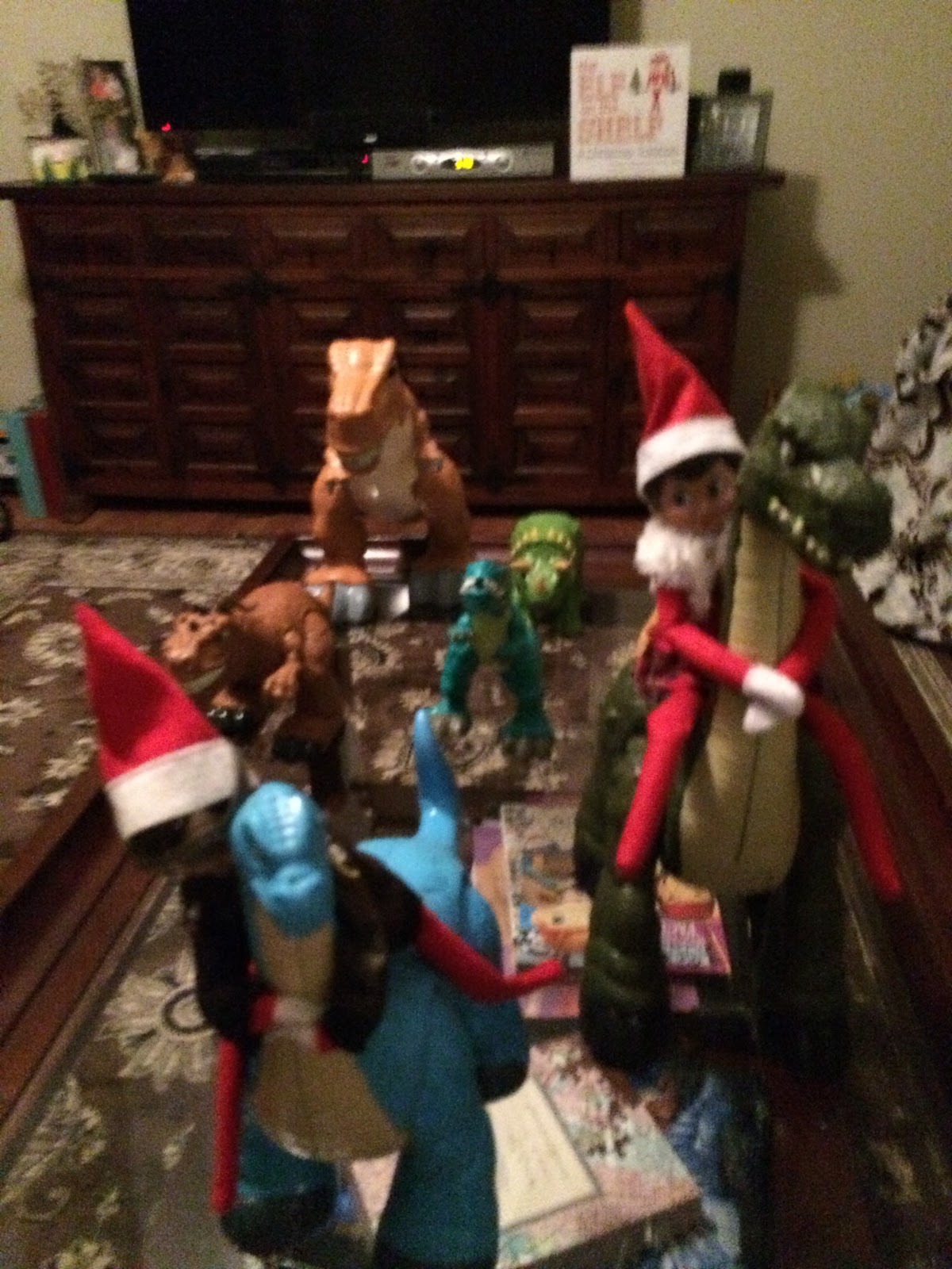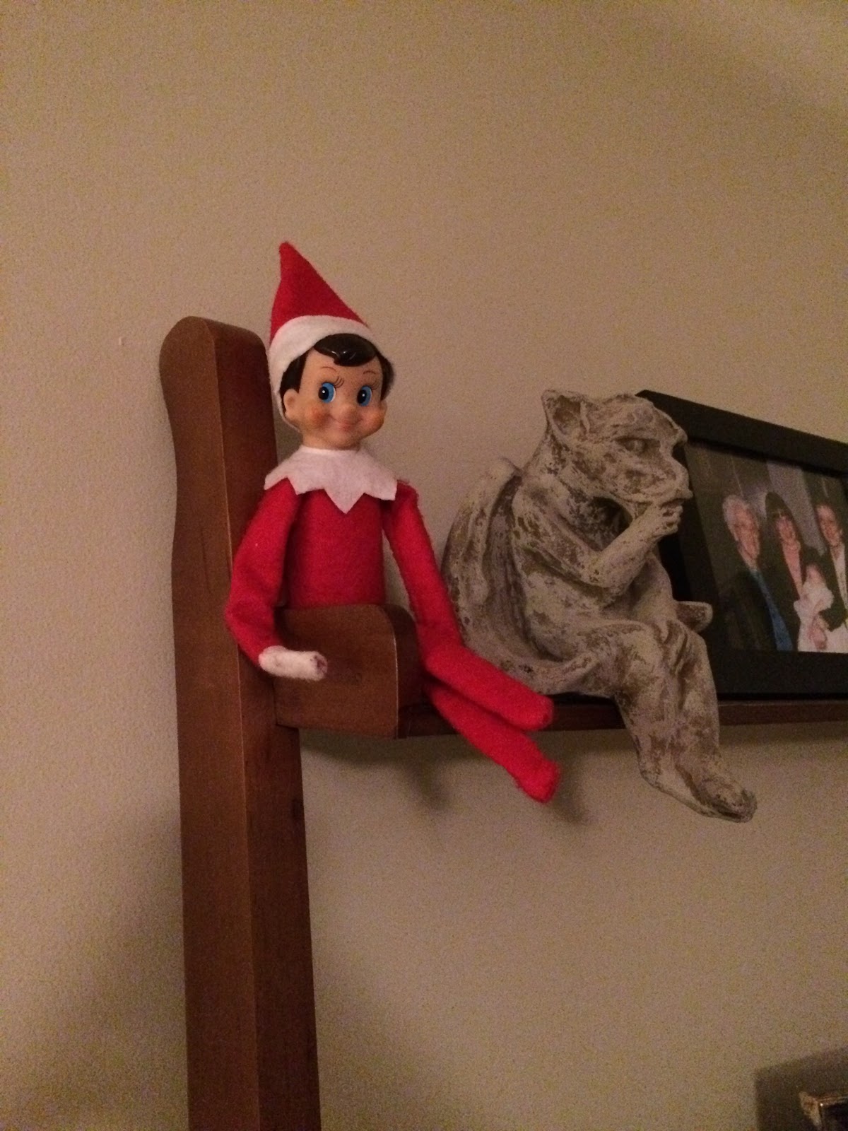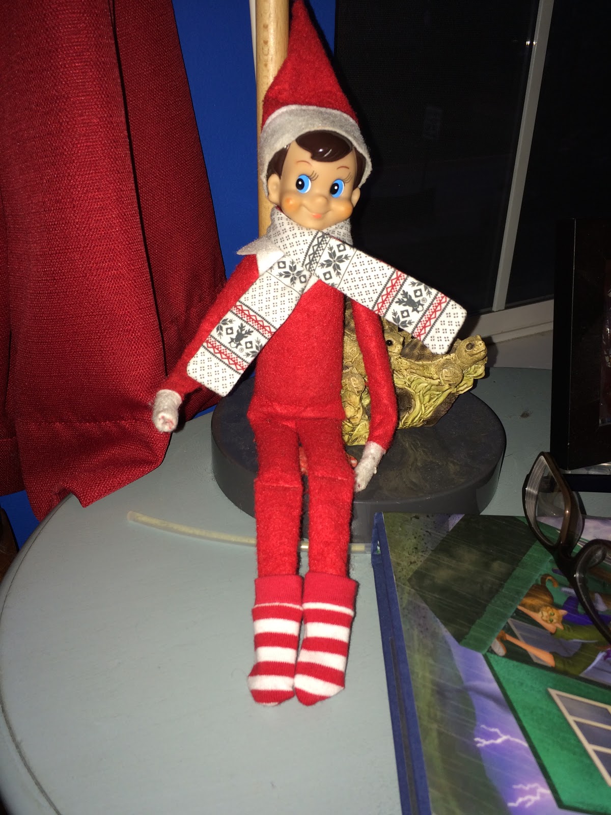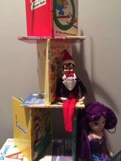 The next day we found the elves just hanging around in the kitchen. John said “Why are they always together? Can’t they just do stuff apart?”