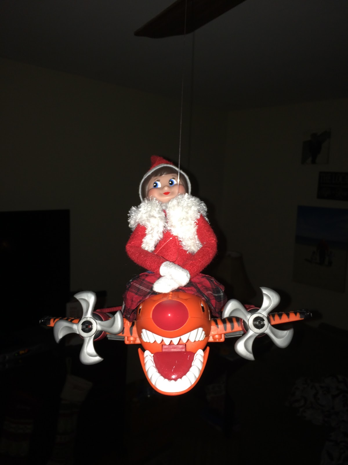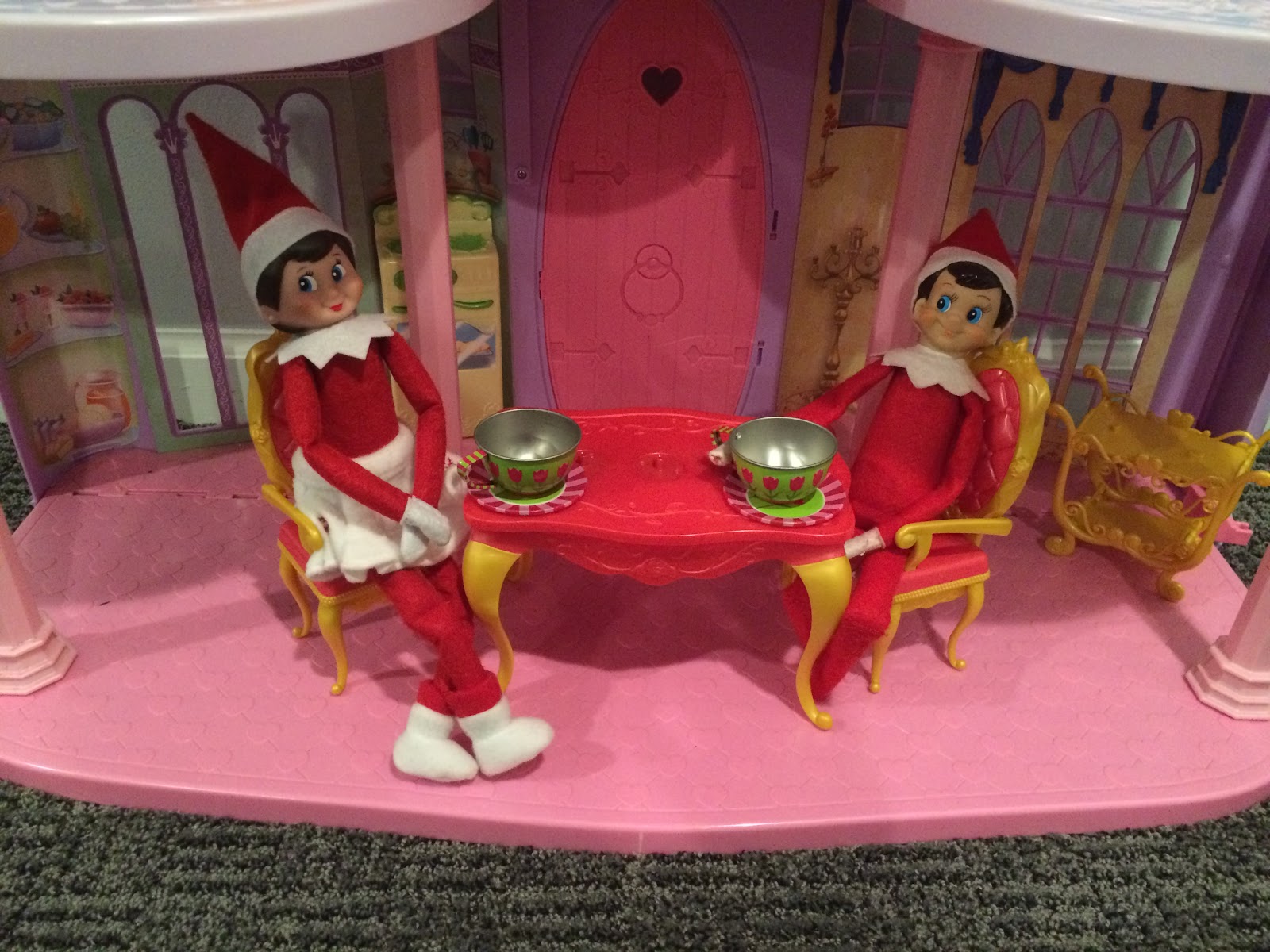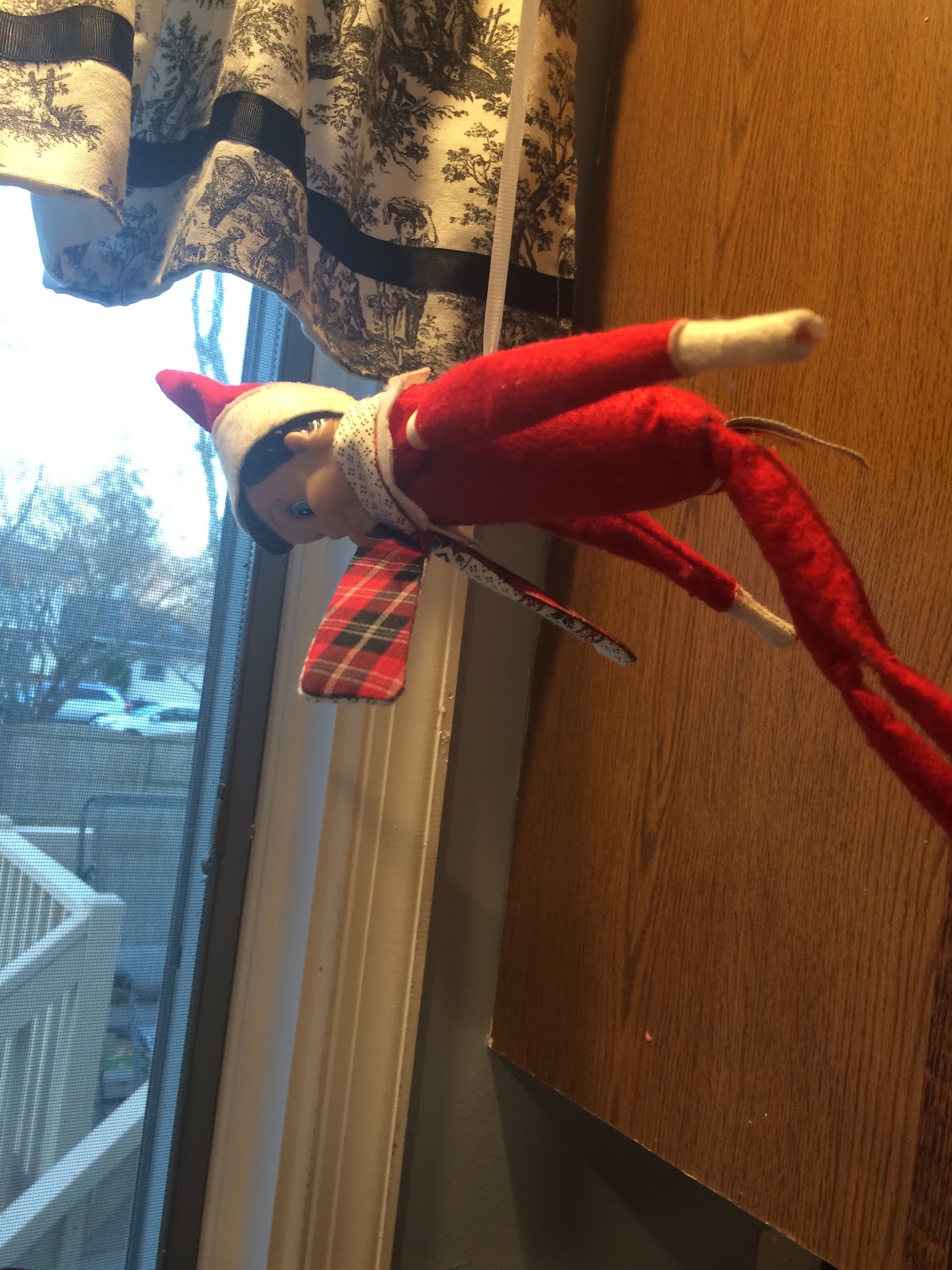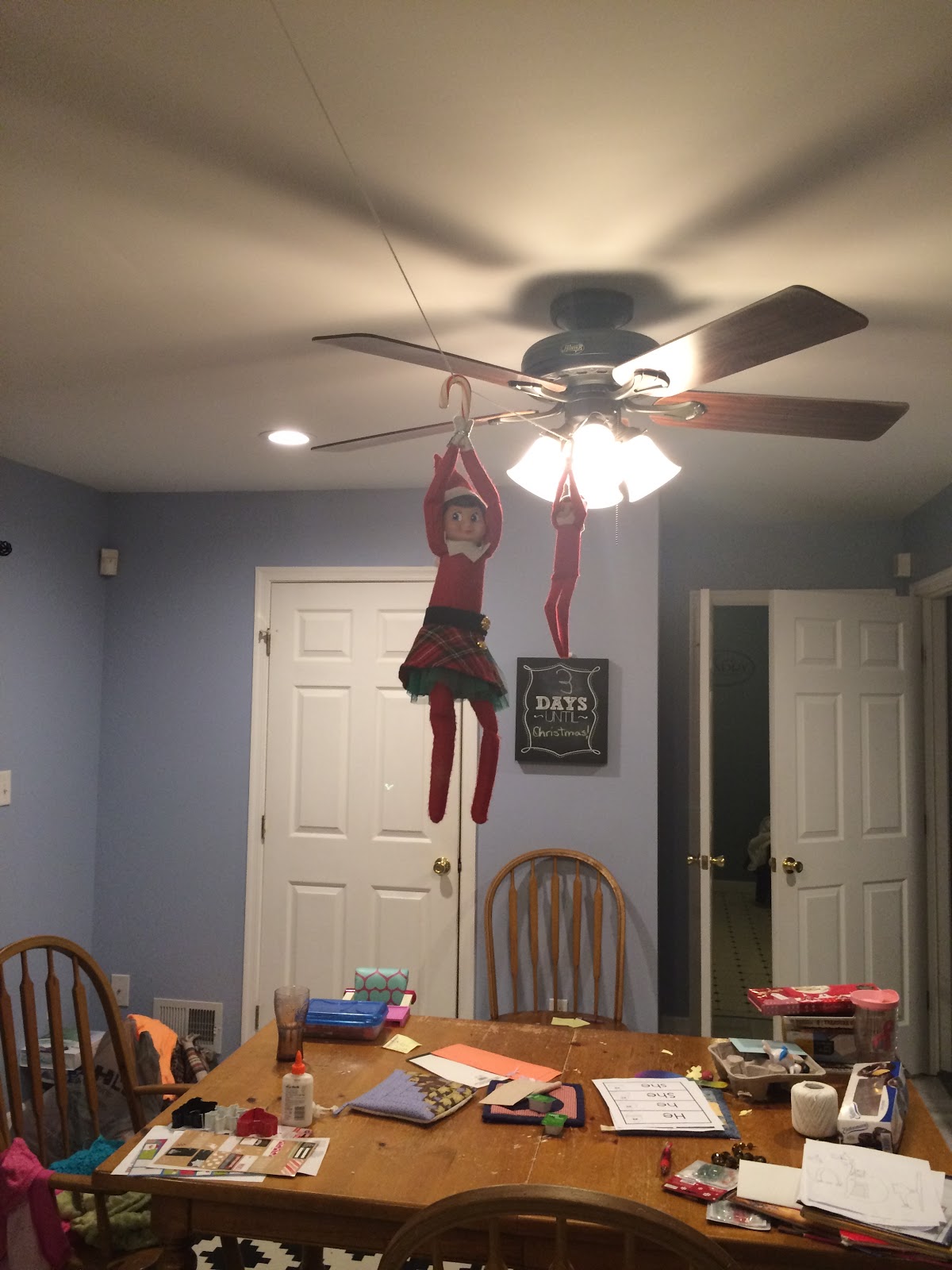 The next day we found the elves sky diving in the kitchen.
