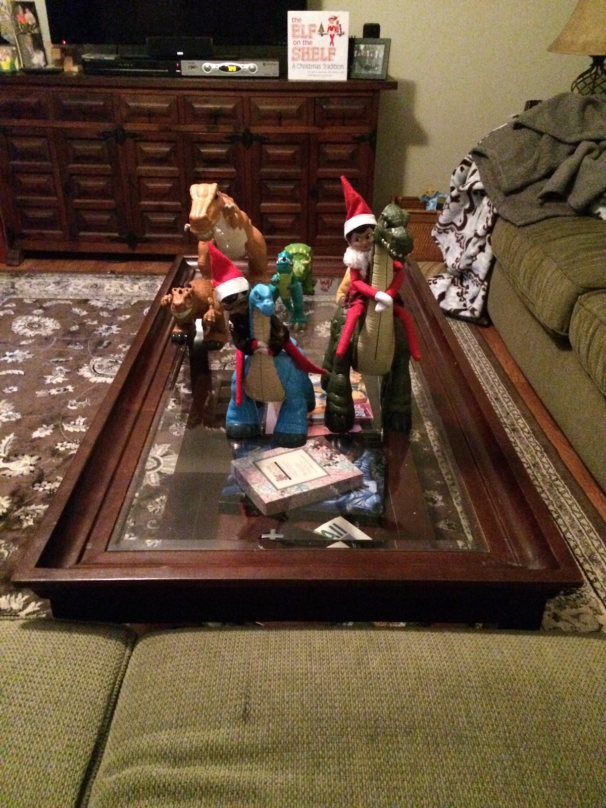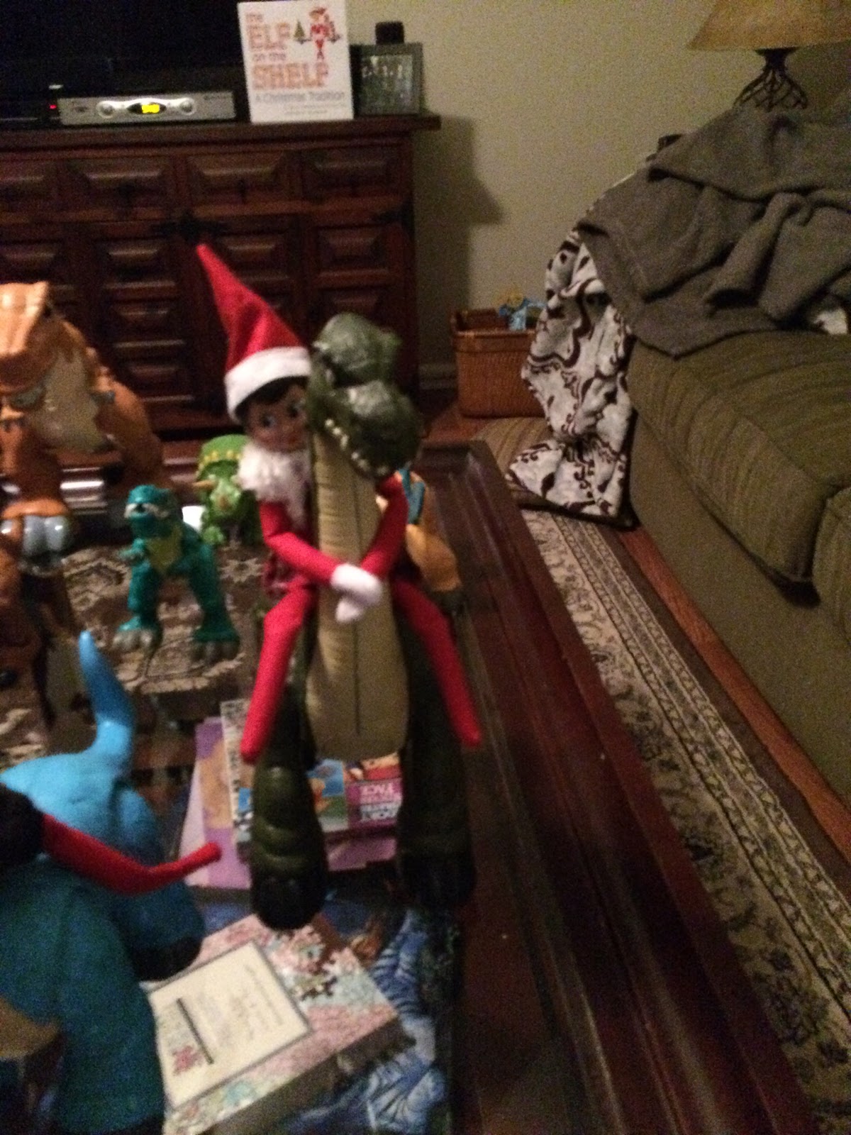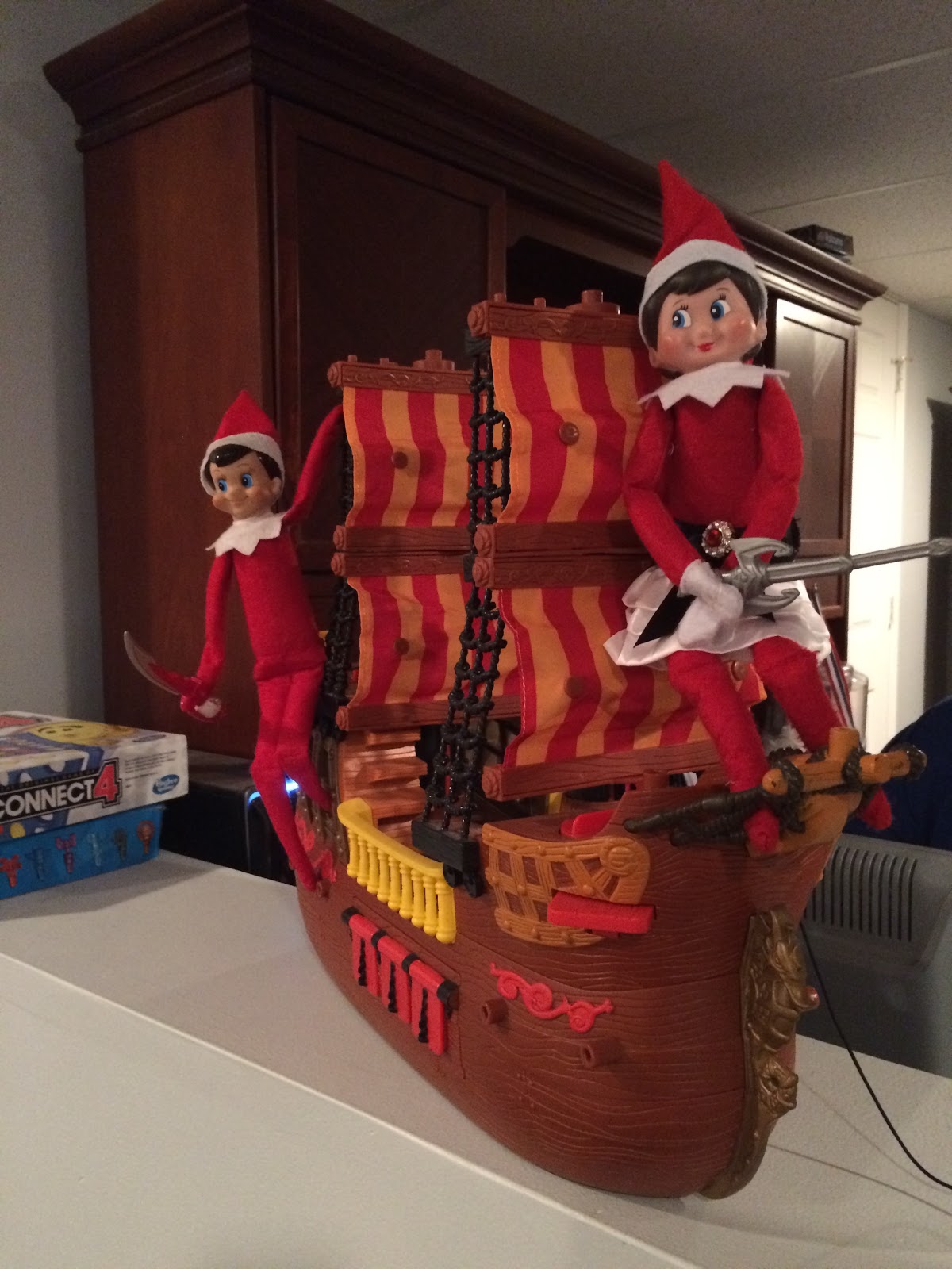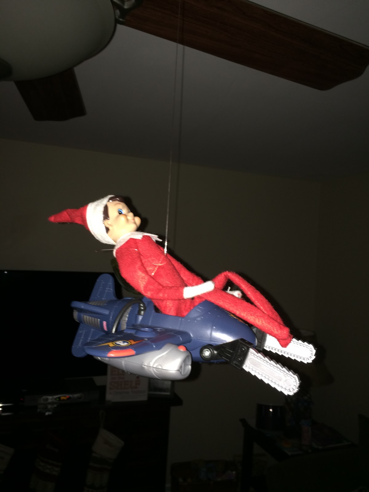 The next day we found the elves sky diving in the kitchen.