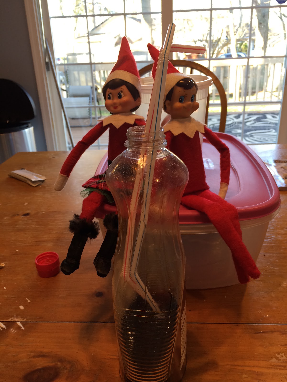 Tuesday, December 15th we found the elves drinking syrup!