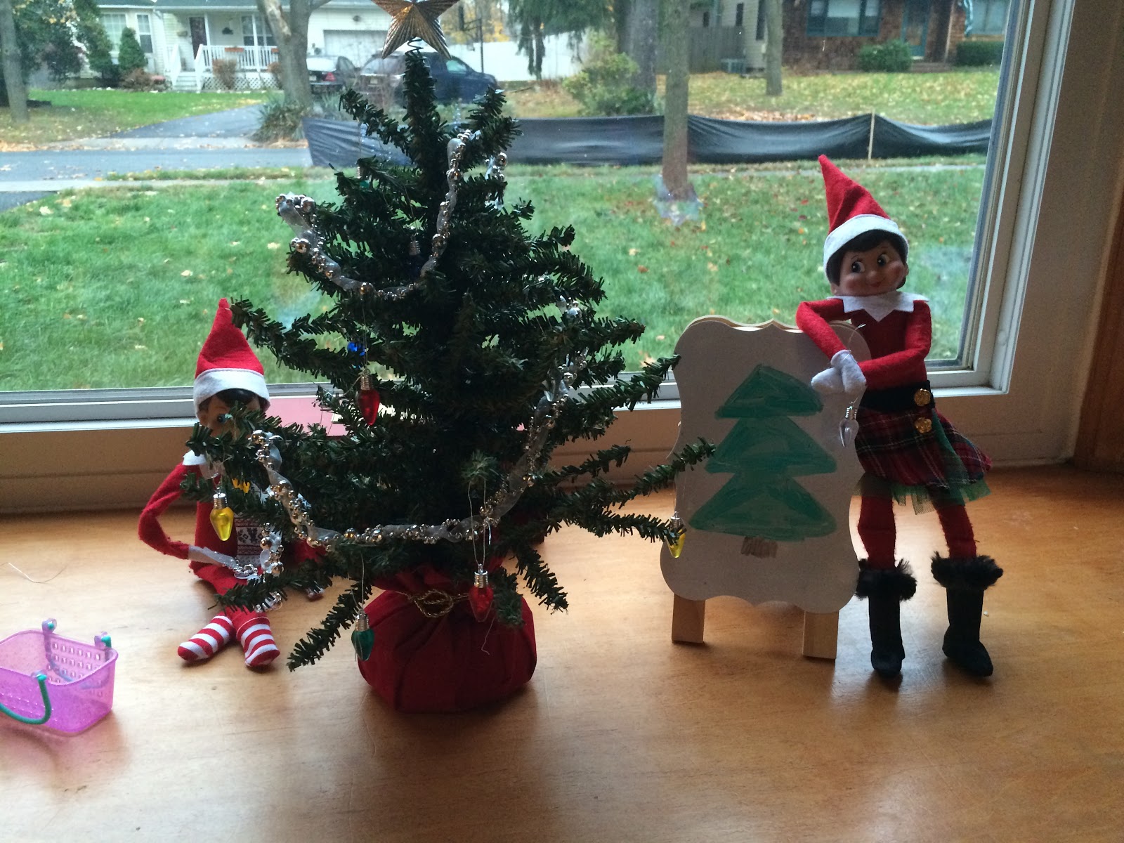 The next day, Buddy and Snowflake set up their very own Christmas tree. They must have heard Mommy and Daddy talking about how we were going Christmas tree shopping that very day!