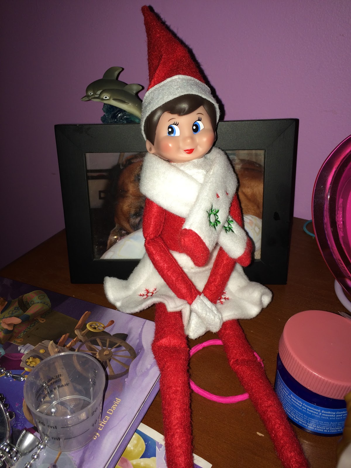 That same day, Gillian had a really bad day at school and Daddy picked up Snowflake as punishment. When you touch an Elf on the Shelf, they lose their magic. Gillian was very upset, but her behavior was horrible at school and she needed an additional punishment. The following day, Buddy came back but wasn’t very happy.