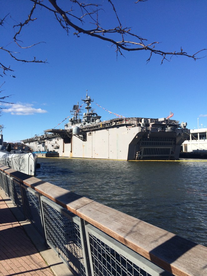 My big brother Joe is a Captain in the Navy. He is currently the Executive Officer on the Iwo Jima. The Iwo Jima is an amphibious assault ship. We found out that the ship would be in New York for Veterans Day and we planned a trip for my family to tour the boat.