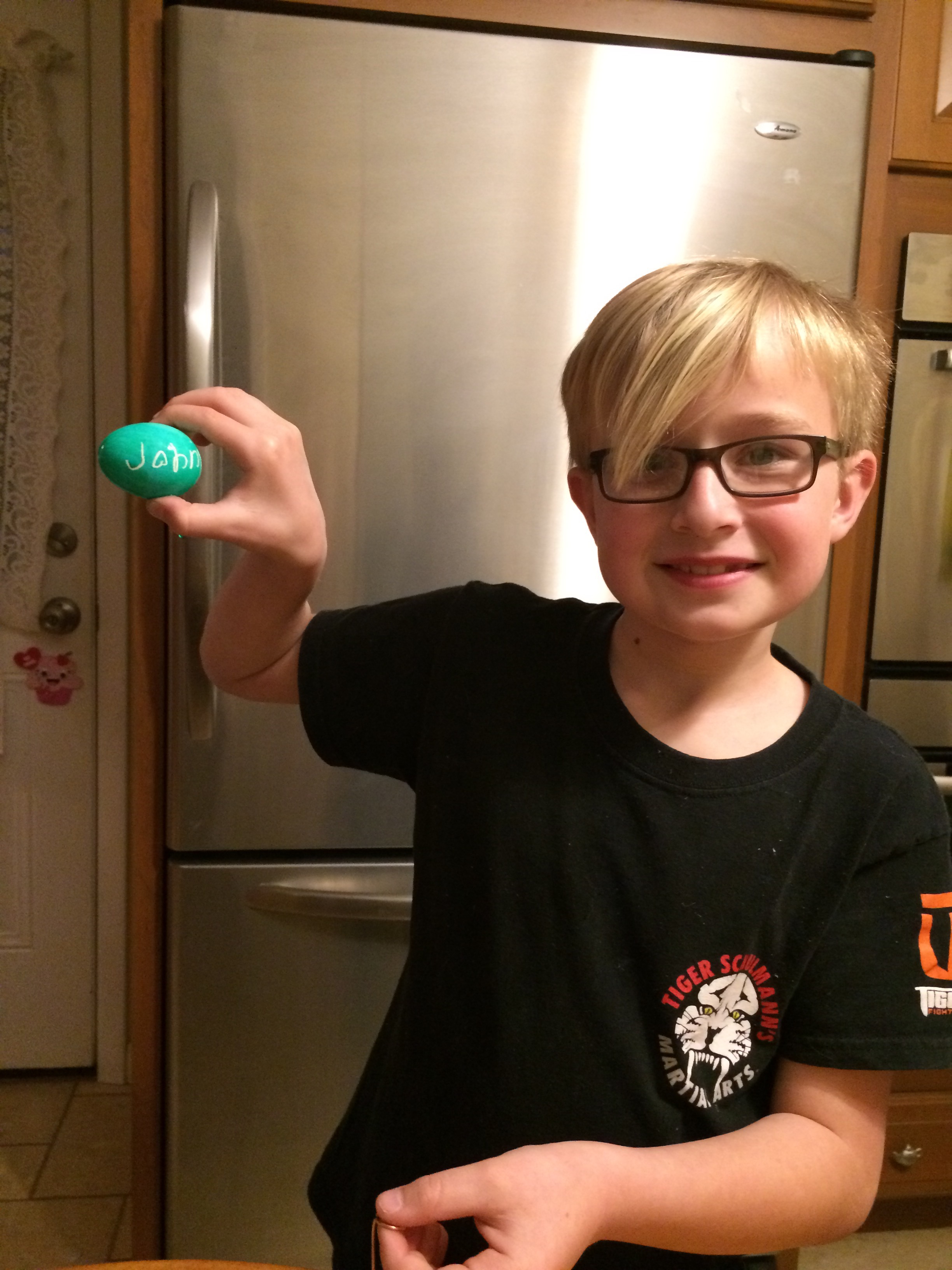 Last night we dyed Easter Eggs. The kids had so much fun.