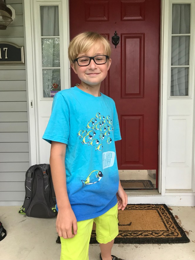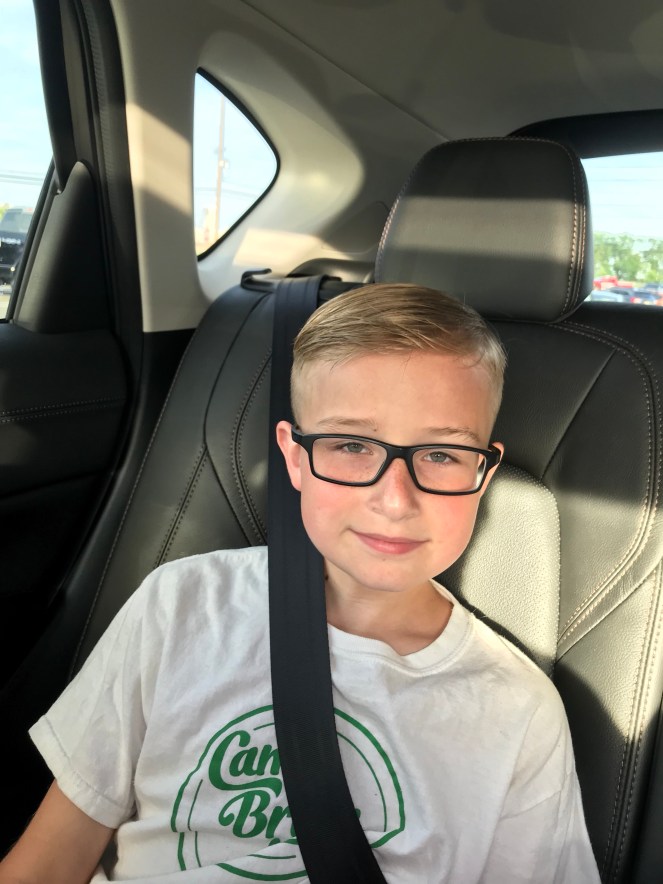 Anyway back to Tuesday morning, I say to John, “Did you cut your hair?” He looks right at me and says “No!” I said “John?” He put his head down and said “Yes, I cut my hair.” After questioning him, he said he didn’t like how his bangs kept getting in his eyes. I sent him to camp and figured I would fix the hair later.