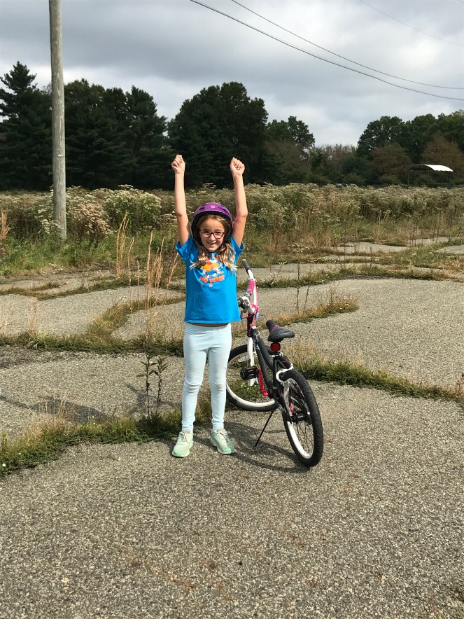 Daddy took her on a couple of laps and I did a few with her. Finally it clicked. All of a sudden I realized that Daddy wasn’t holding her bike and she was cruising along all by herself. The video below is the end of her first long trip by herself.